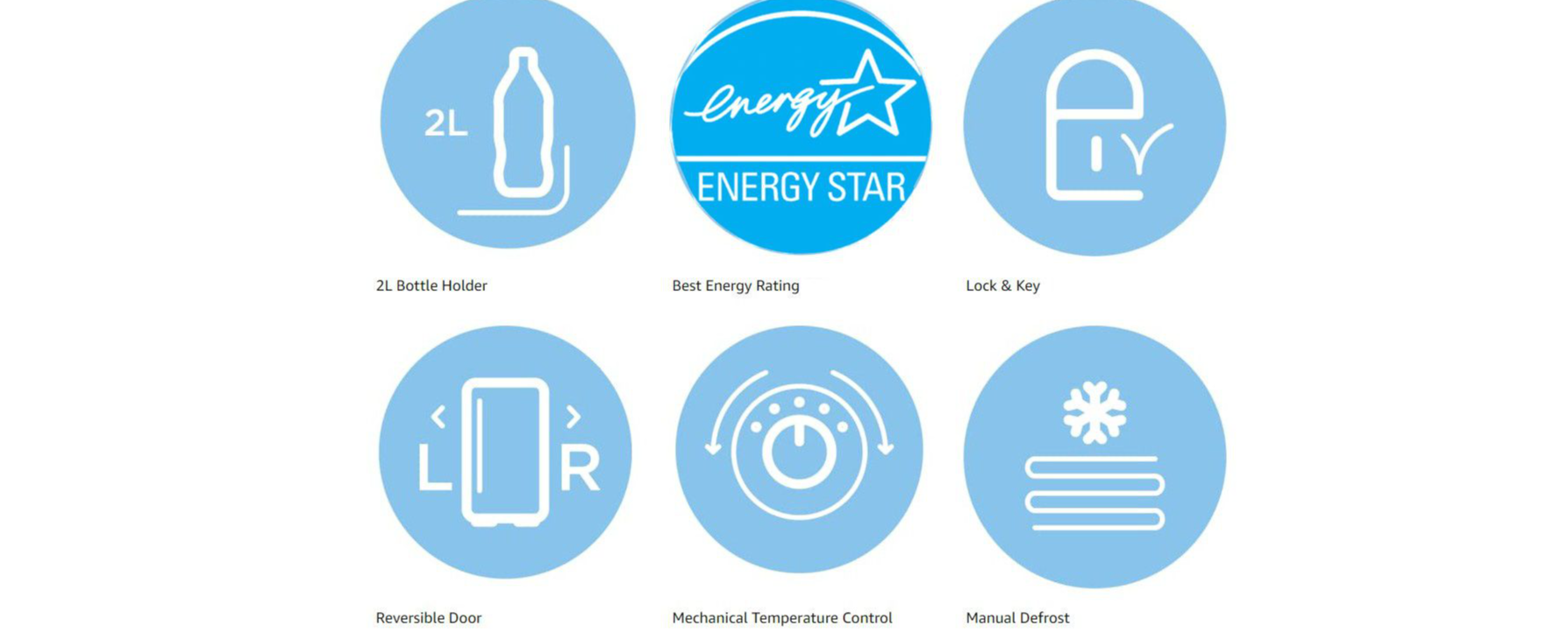 Door rack to hold 2L bottle, E-star energy class, Optional Lock&key.