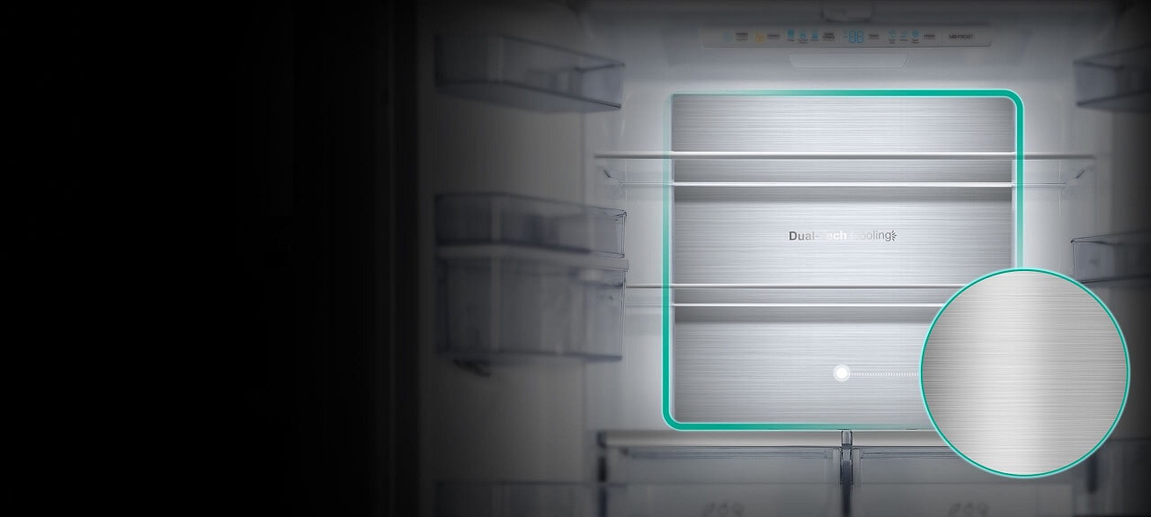 Metal Tech Cooling. The rear wall of the refrigerator is covered with stainless steel, which guarantees an even distribution of cold air. This combination of advanced technologies ensures ideal temperature and humidity levels at all times.
